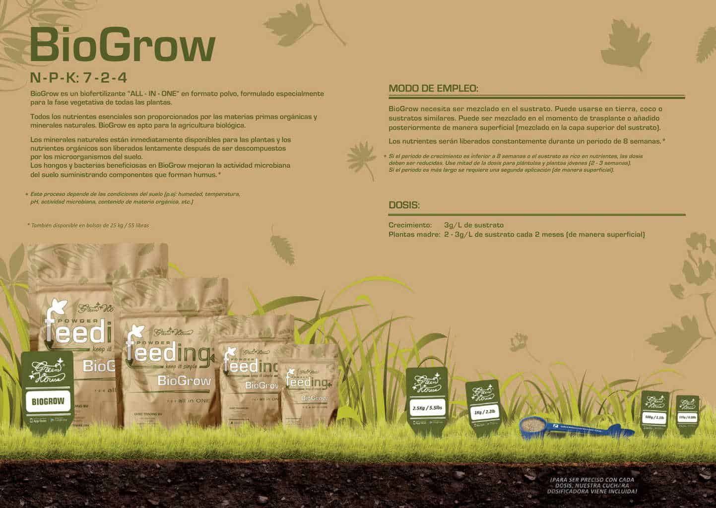 Bio Grow y Bio Bloom son los abonos de crecimiento y floración respectivamente. Generalmente Bio Grow basta con usarlo sólo en los trasplantes. Bio Bloom por su parte, dependiendo del período de floración de la planta lo usaremos una única vez, o dos para las variedades de floración superior a las 10 semanas.