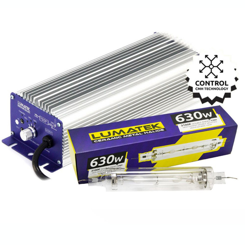 Lámpara Lumatek 630W 3100K: es una lámpara que crea niveles PAR/PPF de alta energía con poco calor a un espectro completo más similar a la luz del sol, lo que incrementa la producción de resina y terpenos. Con respecto a las típicas lámparas de casquillo, las de doble entrada son más estables y duraderas, ya que no se ven sometidas a la misma tensión. Ésto permite tener un aumento de la intensidad de la luz y PAR / salida de PPF de hasta un 50% en comparación con las lámparas estándar. Produce un crecimiento más saludable de la planta y un mayor rendimiento. Cuenta con un CRI (índice de reproducción del color) de> 90%. Ofrece un total de 77600 lúmenes.