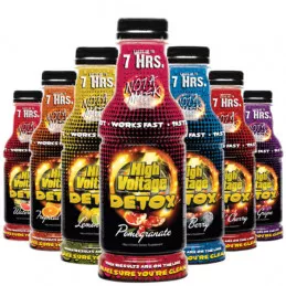 High Voltage Premium Detox Drink es una bebida limpiadora de toxinas elaborado con una exclusiva fórmula de vitamina B, creatina, extractos de hierbas y un gran número de nutrientes. Es efectivo a los 30 minutos de consumirlo y dura las 7 horas siguientes.